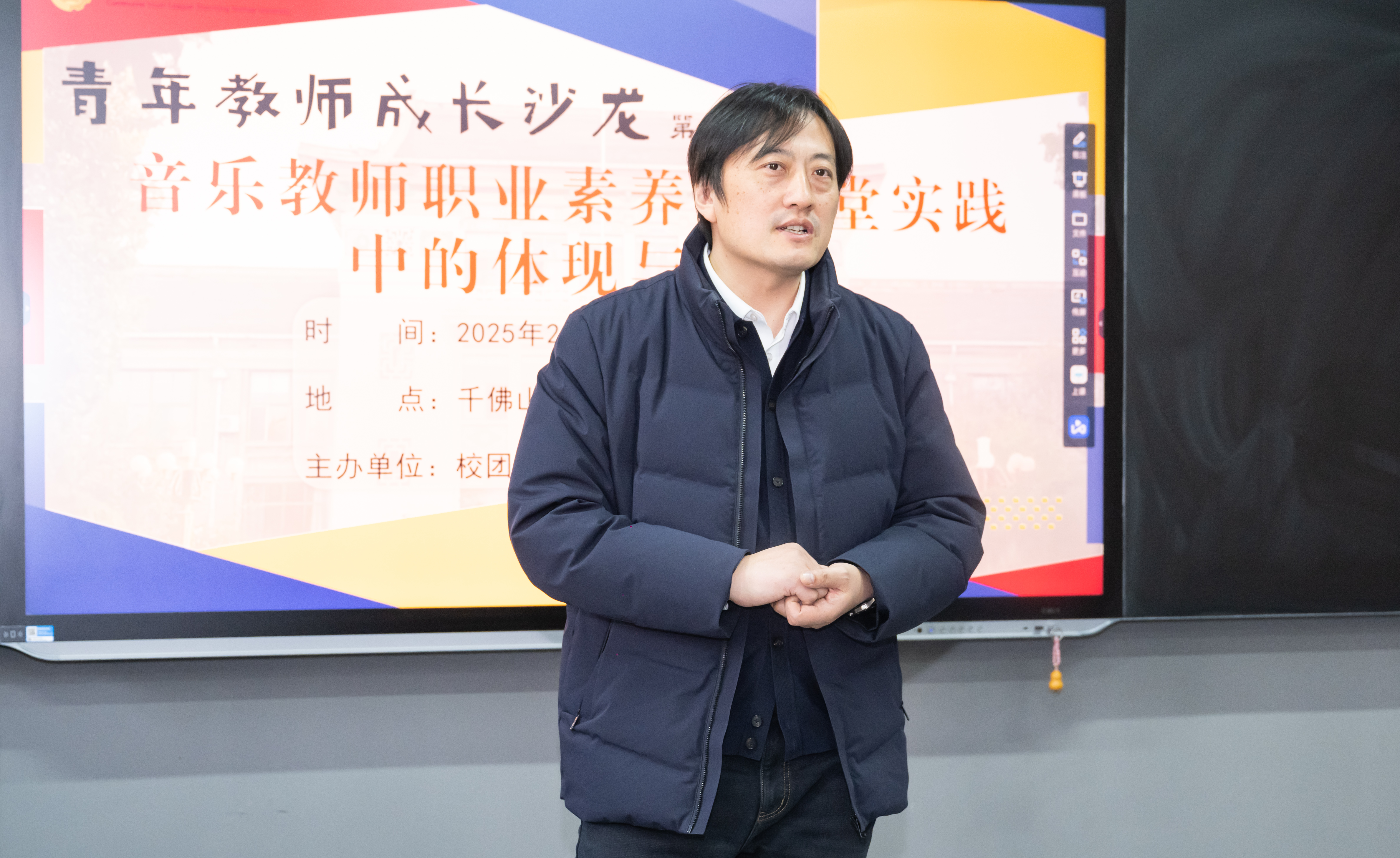 2月18日下午,由校团委、英国正版365首页团委联合主办的青年教师成长沙龙在教学一楼1338教室举行。历下区中小学教研室主任李媛、历下区第五中学教师冯云受邀做《音乐教师职业素养在课堂实践中的体现与提升》主题报告,院长刘东峰、音乐教研室所有教师、2022级音乐学专业全体学生参加,此次活动由学院学术副院长宋丽萍主持。