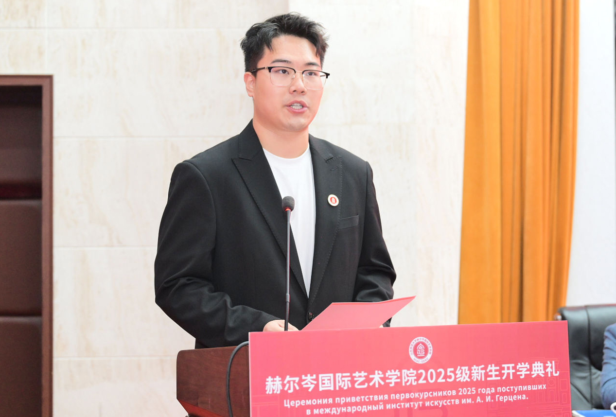 三年前,我怀揣艺术梦想踏入师大校园,成为学院的首批学子。三年时光如斑斓画卷,记录着成长轨迹:中俄教师联合授课点燃创意火花,艺术舞台亮相绽放青春激情,志愿服务实践播撒温暖希望。这些闪光的瞬间,如璀璨群星照亮我的成长之路。在学院栽培下,我入选第28届中国青年志愿者研究生支教团,一年后即将奔赴新疆支教,两年后将重回母院深造,我的青春之梦,将在祖国的大地上践行时代使命,也将在挚爱的校园里续写崭新篇章。这里是梦想起航的地方,眼前,是广阔无垠的艺术天地;脚下,是通往理想的漫漫征途。“向下扎根,向上眺望”。我们要汲取民族千年文脉的智慧与灵感,搭乘汹涌澎湃的时代浪潮,在跨文化交流中拓展思维、激发创意,形成独树一帜的艺术语言。“勤于思考,勇于实践”。我们要勤思辨、敢质疑、勇创新,让汗水与坚持成为艺术生命注脚,用行动验证所学、用作品感动他人,在实践的熔炉中焕发出真正打动人心的艺术力量。“保持独立,学会共融”。我们要坚守属于自己的艺术理想与价值追求,在思想的碰撞中激发灵感,在团队的协作中汇聚力量,让个体的独特在集体的和谐中绽放光彩。我们是学院成长的见证者,更是未来的开拓者与创造者。让我们以艺术为媒介,用音符传递友谊、用色彩描绘梦想、用舞姿展现自信、用行动诠释青春,共同书写属于我们这一代人的精彩篇章!