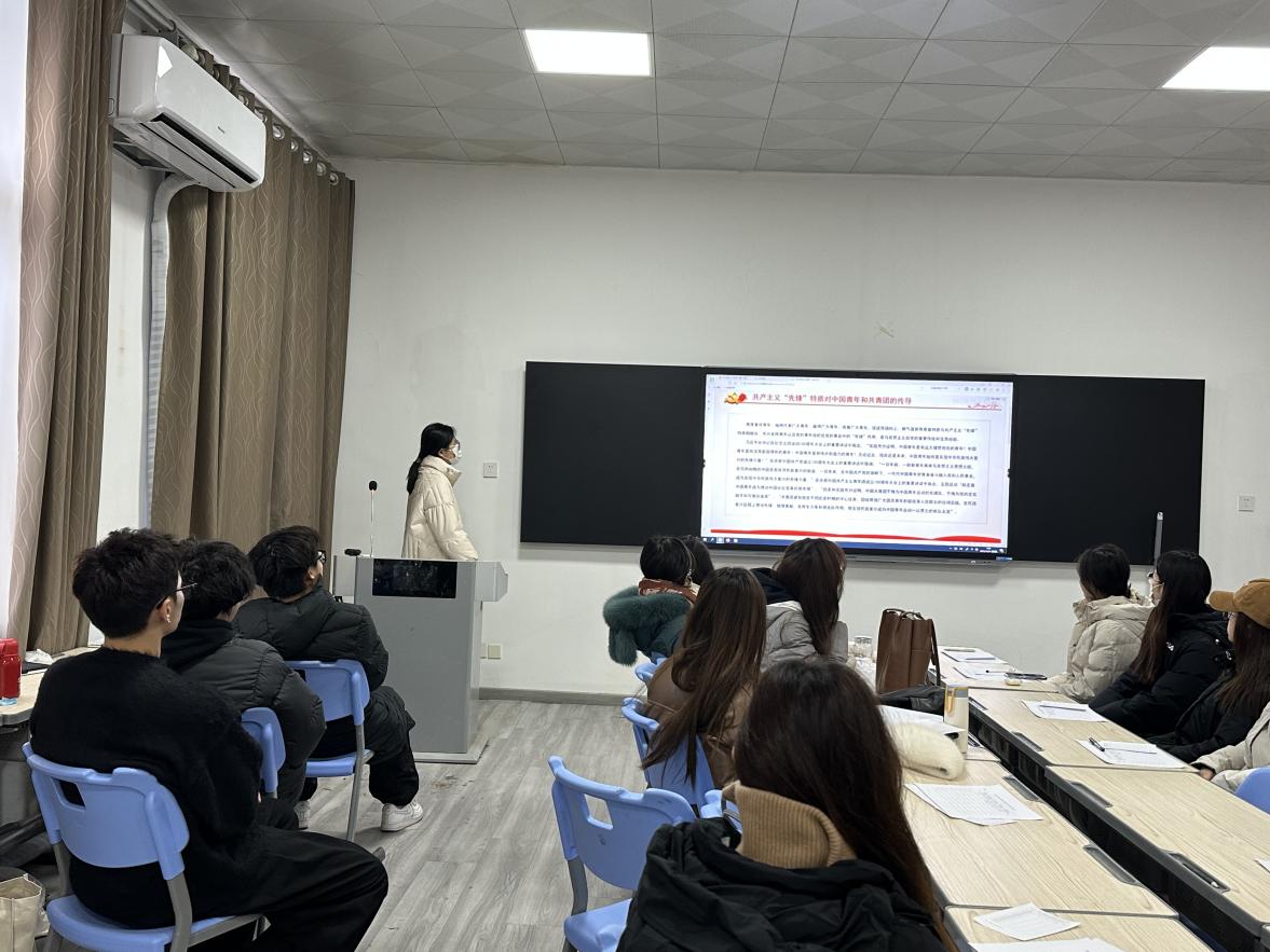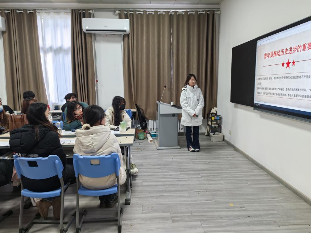 潘欣宇以“永葆青年运动和共青团的‘先锋’特质”为主题展开团课,对共产主义正确坚定的政治方向、清醒科学的思想指引、高远无私的价值追求和勇往直前的奋斗干劲进行具体说明。她向同学们阐释了共产主义“先锋”特质的重要性,指出要高举爱国主义旗帜,积极传播新思想新文化,以“为中国人民谋幸福、为中华民族谋复兴”为初心和使命,充分发挥青年力量在党的事业中的“先锋”作用。