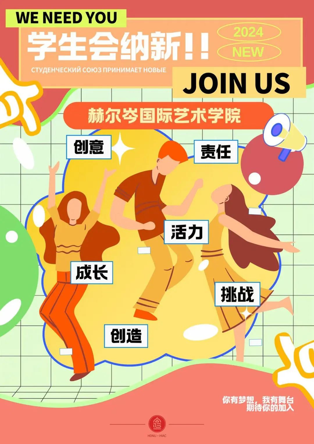 3、文创产品设计与海报设计:负责设计学生会文创产品,如徽章、文化衫等;以及相关活动的海报设计(要求具备手绘及电脑设计的能力),确保充分展现学生会的形象和文化。