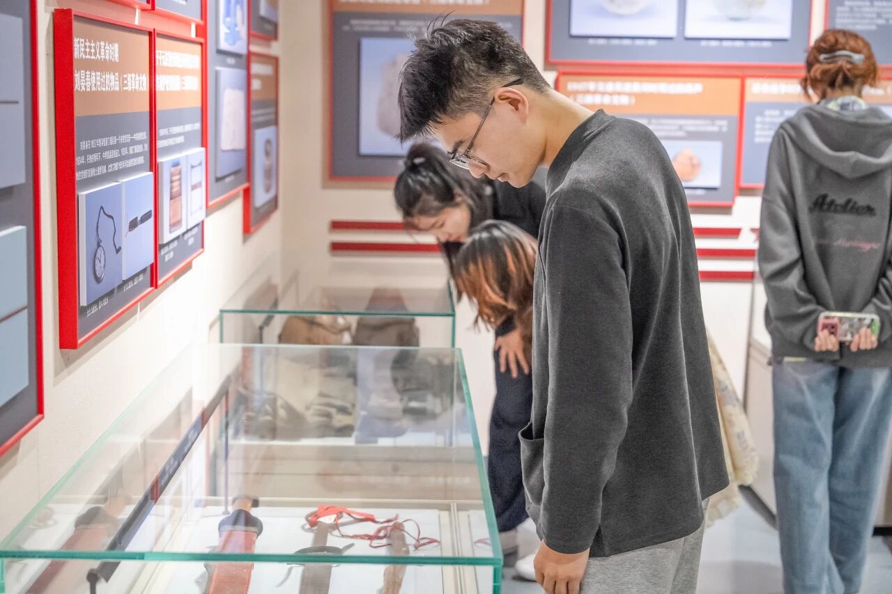 在冀鲁豫边区革命纪念馆内,学院师生系统地回顾了中国共产党领导下的边区军民革命斗争史。序厅中,巨型浮雕《鲁西南烽火》以磅礴气势揭开历史的序幕,三大主题展区“星星之火”“浴血抗日”“和平之路”串联起从土地革命到解放战争的光辉历程。师生们认真观摩汉白玉浮雕与陶版壁画,深入了解了冀鲁豫边区的战略地位,感受到了军民群像与黄河元素所蕴含的精神内涵。通过浏览革命历史文物,大家回顾了党的光辉历程,重温了革命先辈英勇感人的事迹,详细了解了纪念馆的历史背景及革命故事,深刻领会了革命精神的实质和当代意义。