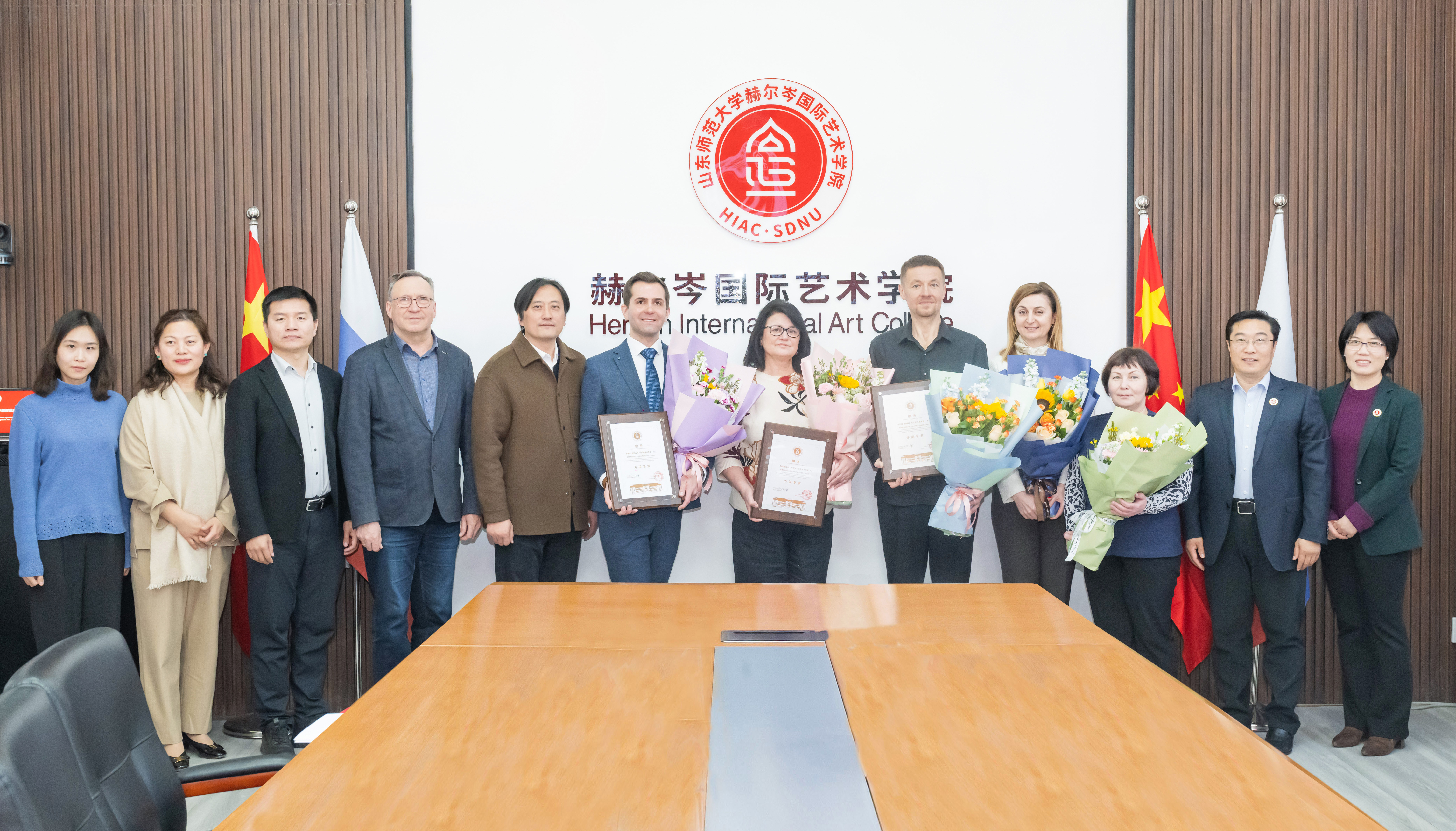 马霍夫·谢尔盖与各位外籍教师在发言中表示,再次欢迎安东诺娃·娜塔莉娅一行的到访,感谢学院的支持与信任,将以高质量人才培养为目标,共同培养具有国际视野的高质量艺术人才。会议最后,刘东峰为外籍教师颁发外国专家聘书。