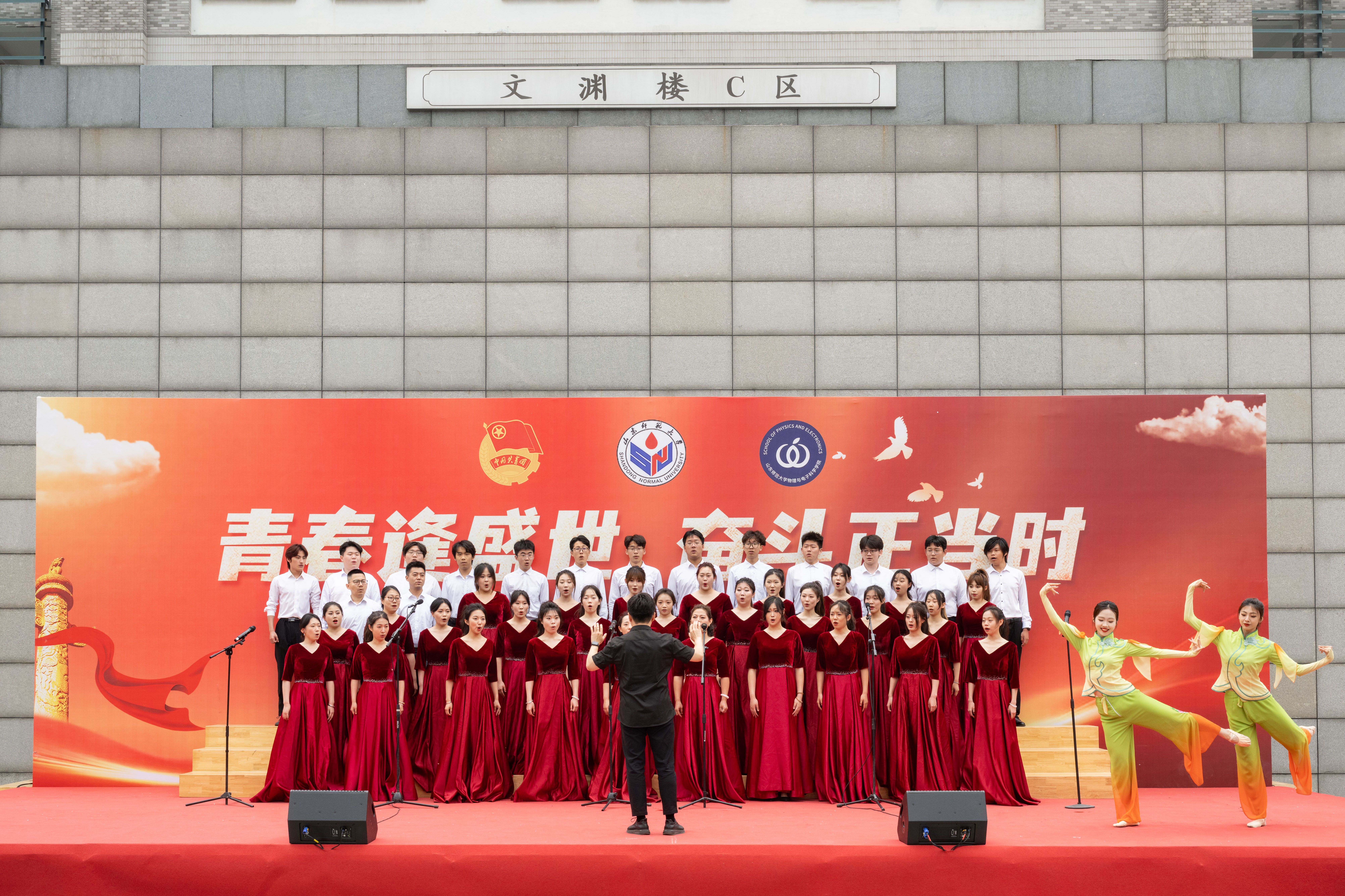 4月28日,第33届365(vip)英国上市“师大之春”系列校园文化活动之“青春逢盛世,奋斗正当时”师生合唱比赛在长清湖校区举行,英国正版365首页荣获一等奖。