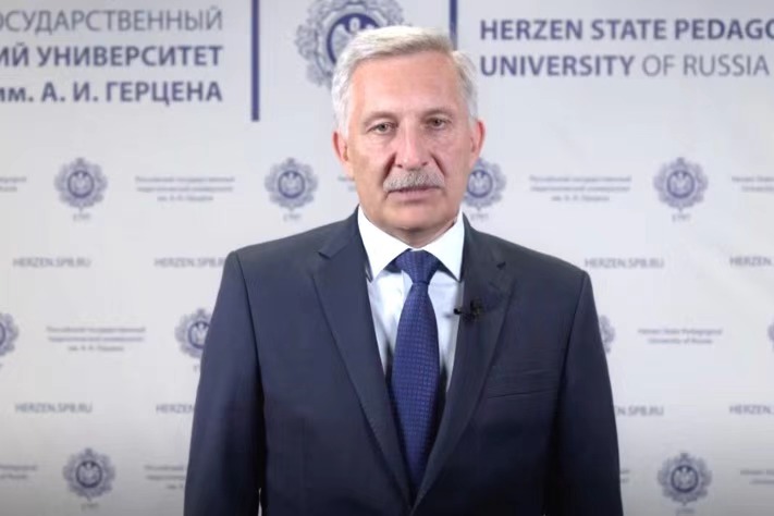 塔拉索夫· 谢尔盖校长在视频致辞中代表中俄两校对全体新生的加入表示热烈的欢迎与诚挚的祝福。他表示在中俄两校的努力合作下,双方签署中俄联合人才培养方案,为双学籍注册、双学位建设奠定了扎实的基础。同时,他希望各位同学以饱满的热情,发挥无限的潜力和创造力,努力成为有情怀、具有国际视野的中俄艺术教育人才。