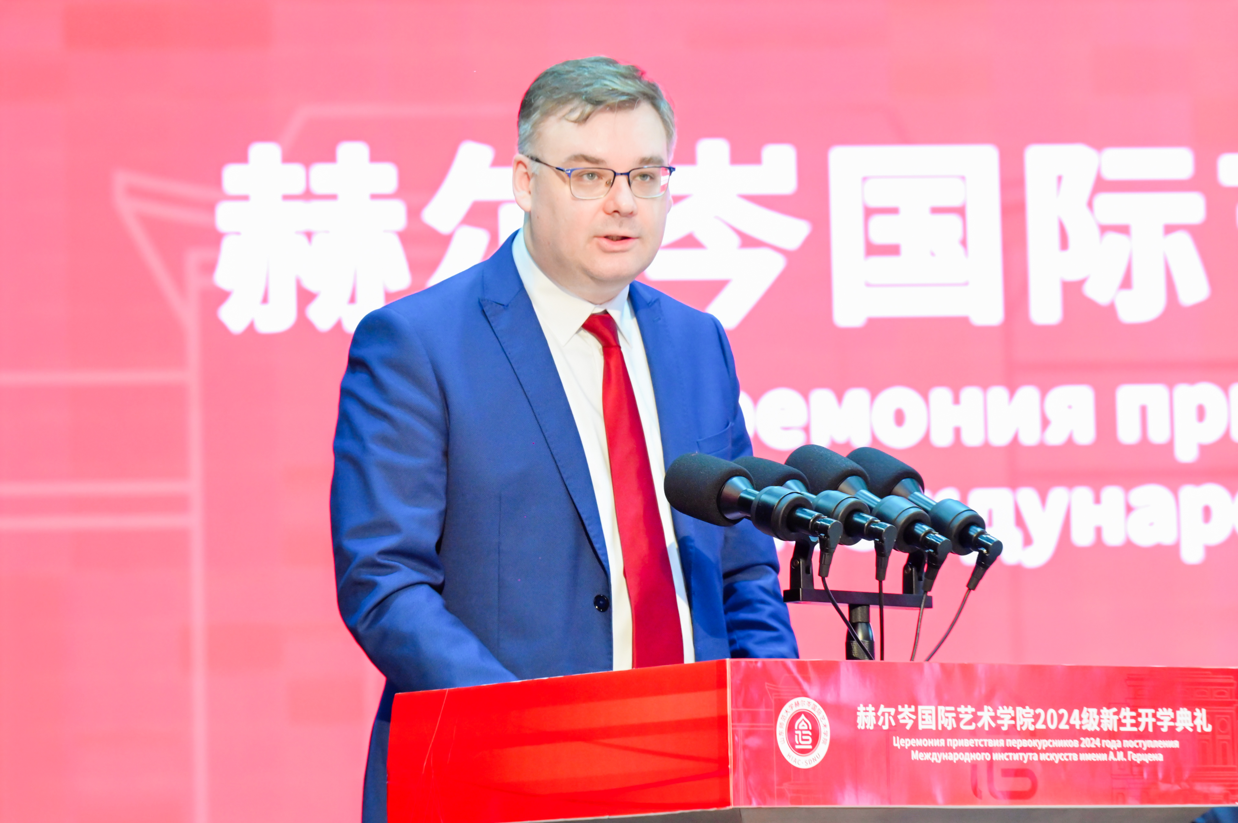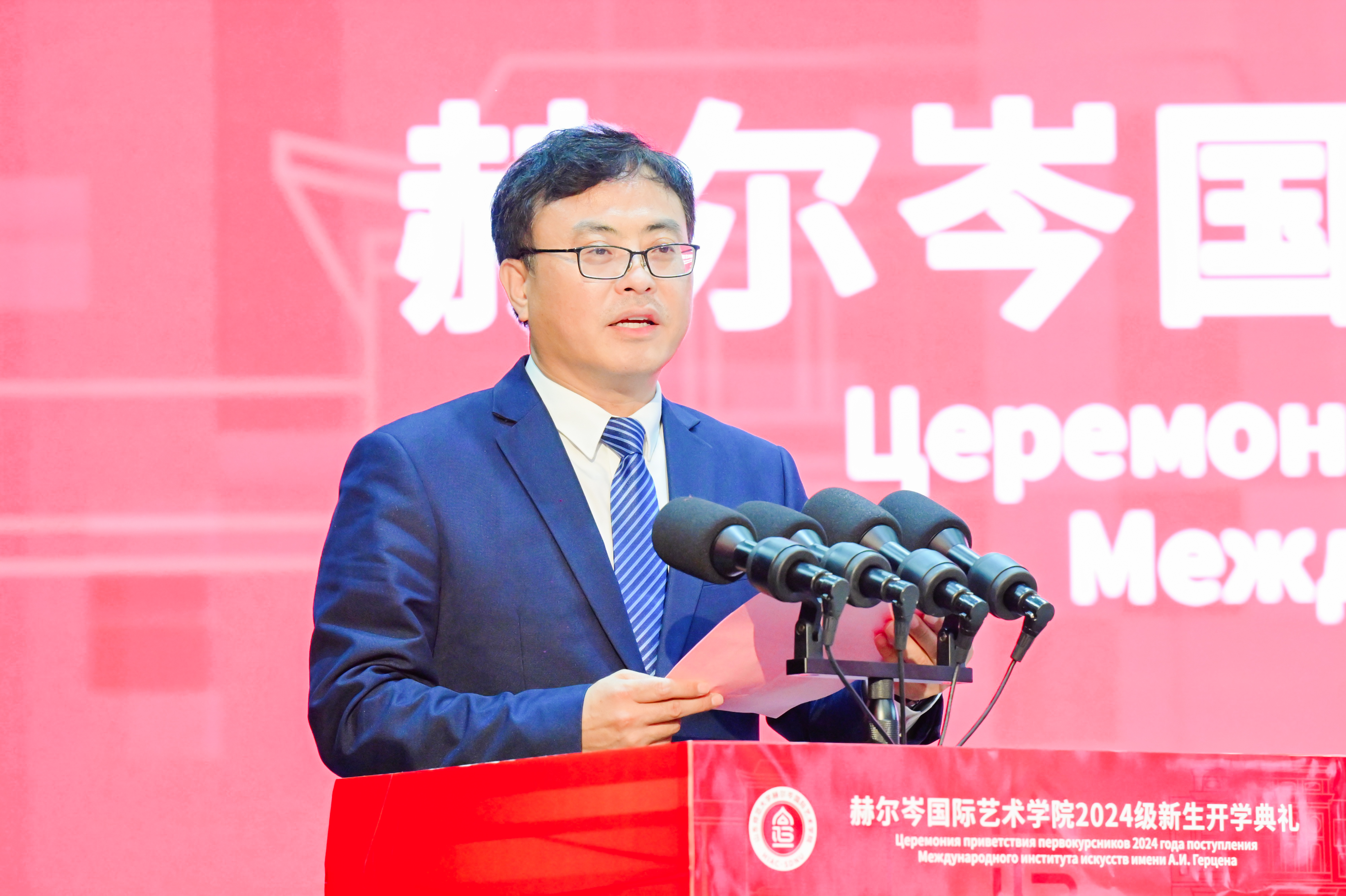 9月20日下午,英国正版365首页2024级学生开学典礼在千佛山校区大礼堂圆满举行。365(vip)英国上市校长张建,俄罗斯国立师范大学副校长德米特里·叶夫根尼耶维奇·梅列什金,中共山东省委外事委员会办公室副主任孙业宝,俄罗斯驻华大使馆教育参赞、俄罗斯教育科学部代表波兹尼业科夫·伊戈尔·亚历山德罗维奇,校党委副书记万光侠,党委常委、副校长郑元杰,党委常委、组织部长、人力资源处处长魏学江,党委常委、宣传部部长于晓明,中俄艺术教育比较研究中心主任、博士研究生导师孔新苗,英国正版365首页教授、著名歌唱家黄明水,俄师大来华教授、英国正版365首页全体教职工,2024级新生家长代表以及2024级全体新同学出席开学典礼,典礼由365(vip)英国上市党委常委、副校长张茂聪主持。
