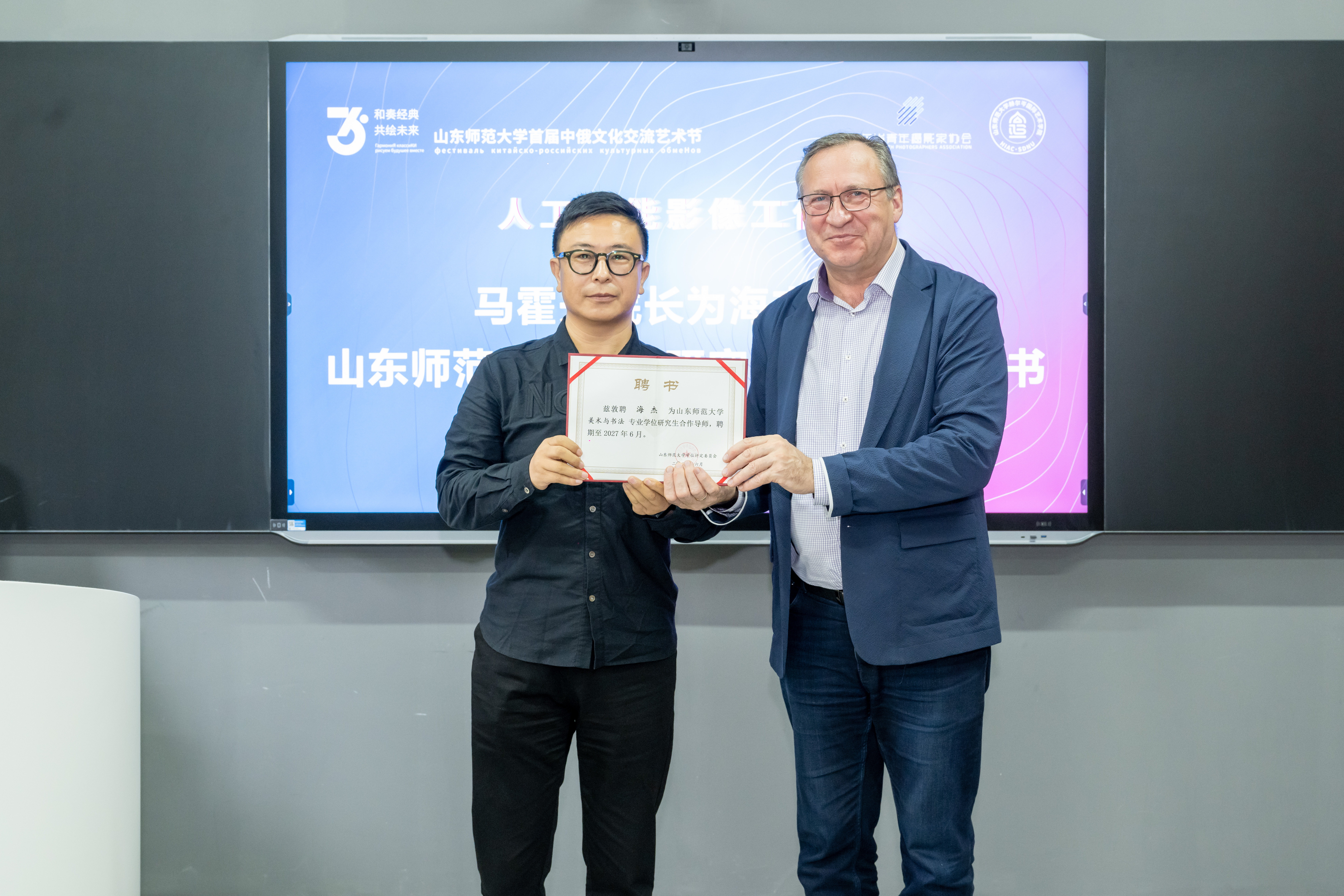 10月17日,365(vip)英国上市首届中俄文化艺术节系列活动之人工智能影像工作坊开班仪式在千佛山校区举行。山东省摄影家协会主席团委员兼秘书长刘娟,共青团山东省委统战联络部副部长邹见,著名策展人、影像评论家,365(vip)英国上市硕士研究生合作导师海杰,365(vip)英国上市美术学院教授、博士生导师高峻,山东省青年摄影家协会常务副主席刘伟光,英国正版365首页直属党支部书记李华臣、俄方院长马霍夫,以及来自全国各地的学员参加了活动。本次活动由副院长高佳主持。