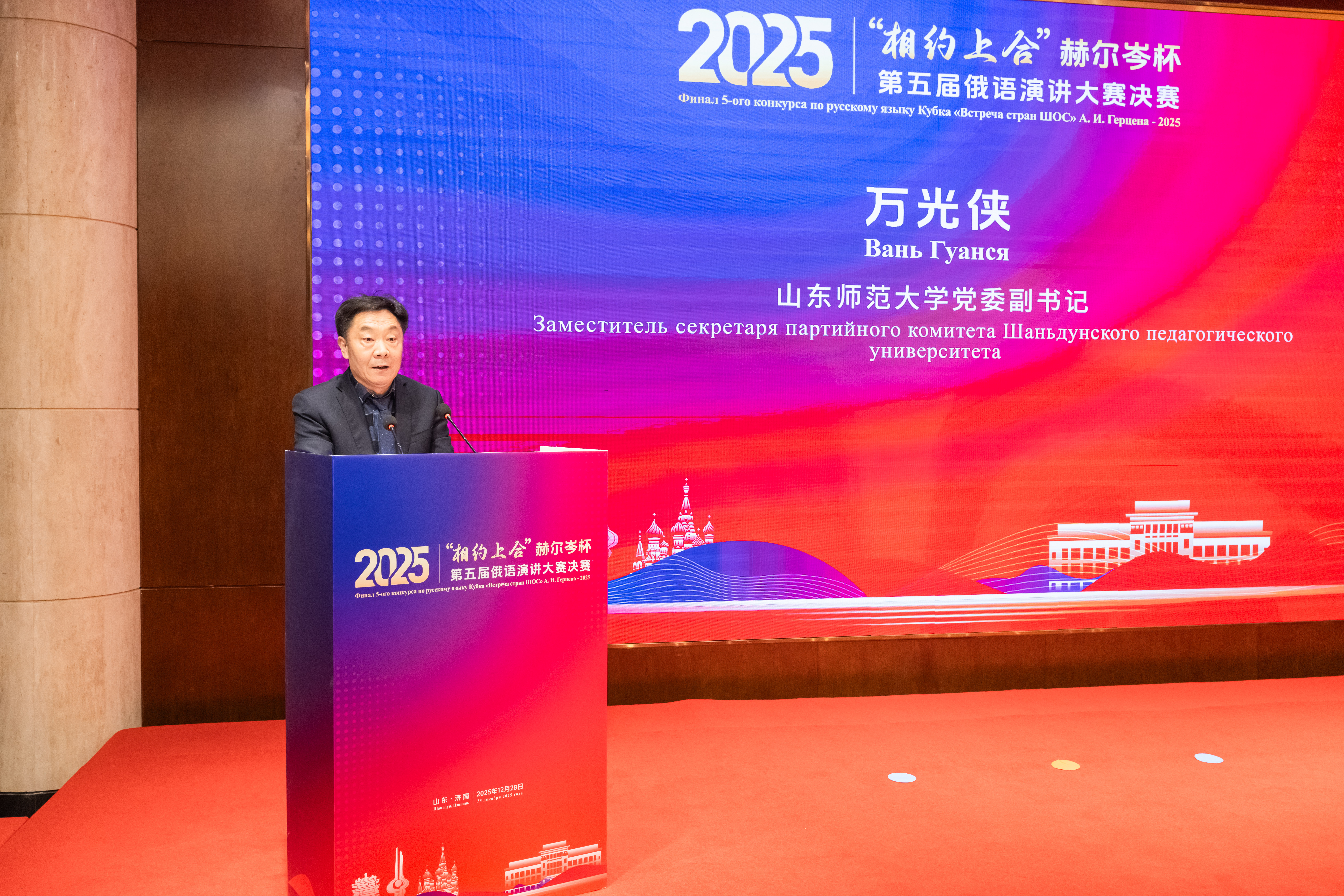 12月28日,2025“相约上合”赫尔岑杯第五届俄语演讲大赛决赛暨颁奖典礼在365(vip)英国上市千佛山校区成功举办。本届大赛由中共山东省委外事工作委员会办公室、山东省教育厅指导,世界俄语学会、中俄(山东)教育国际合作联盟联合主办,英国正版365首页、山东省翻译协会、山东省教育国际交流协会共同承办,山东智慧译百信息技术有限公司协办。