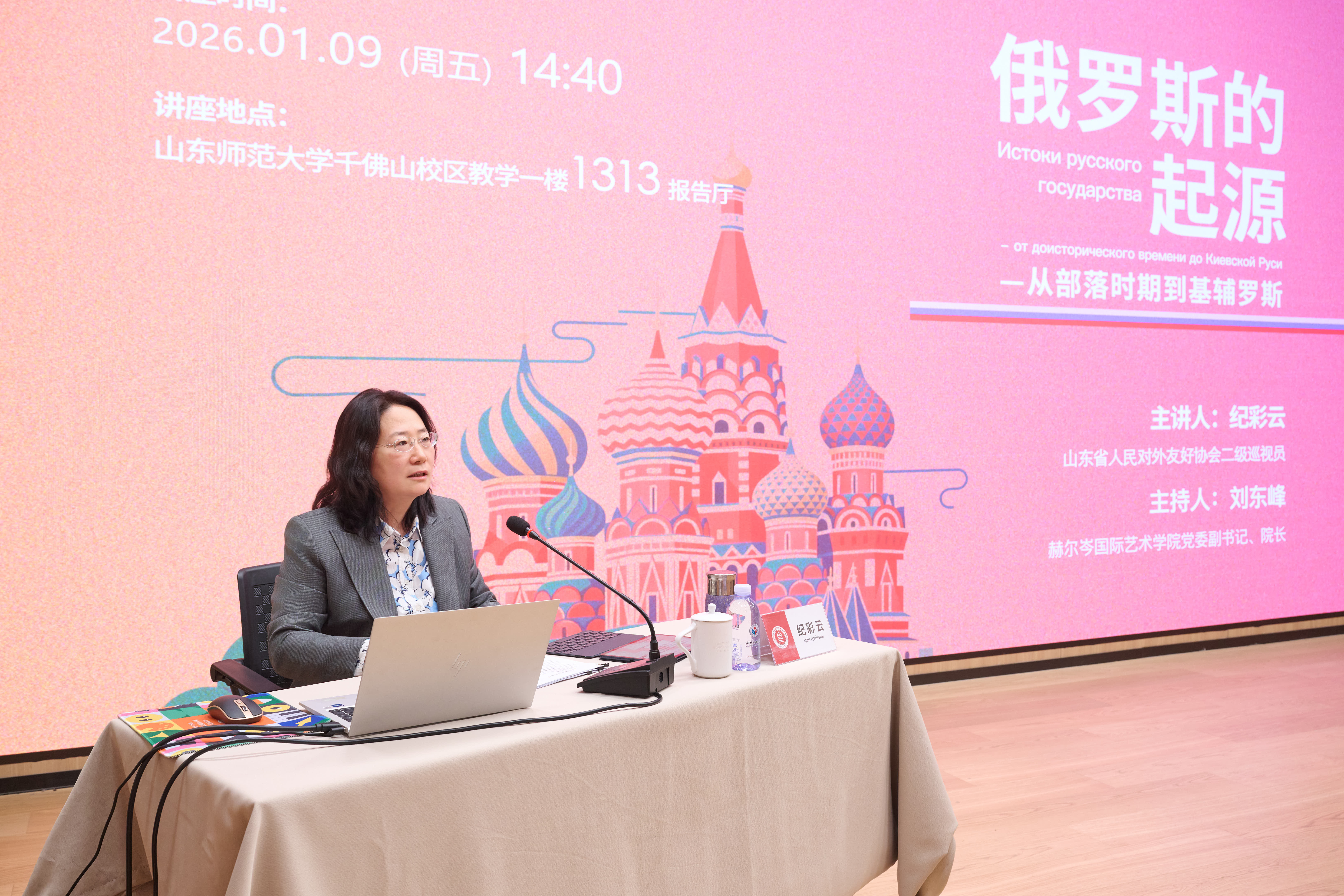 近日,学院邀请山东省人民对外友好协会二级巡视员、欧亚研究专家纪彩云作了题为《俄罗斯的起源—从部落时期到基辅罗斯》的专题讲座。学院副院长高佳、学术副院长宋丽萍,部分青年教师与2024级、2025级研究生参加讲座。讲座由学院党委副书记、院长刘东峰主持。