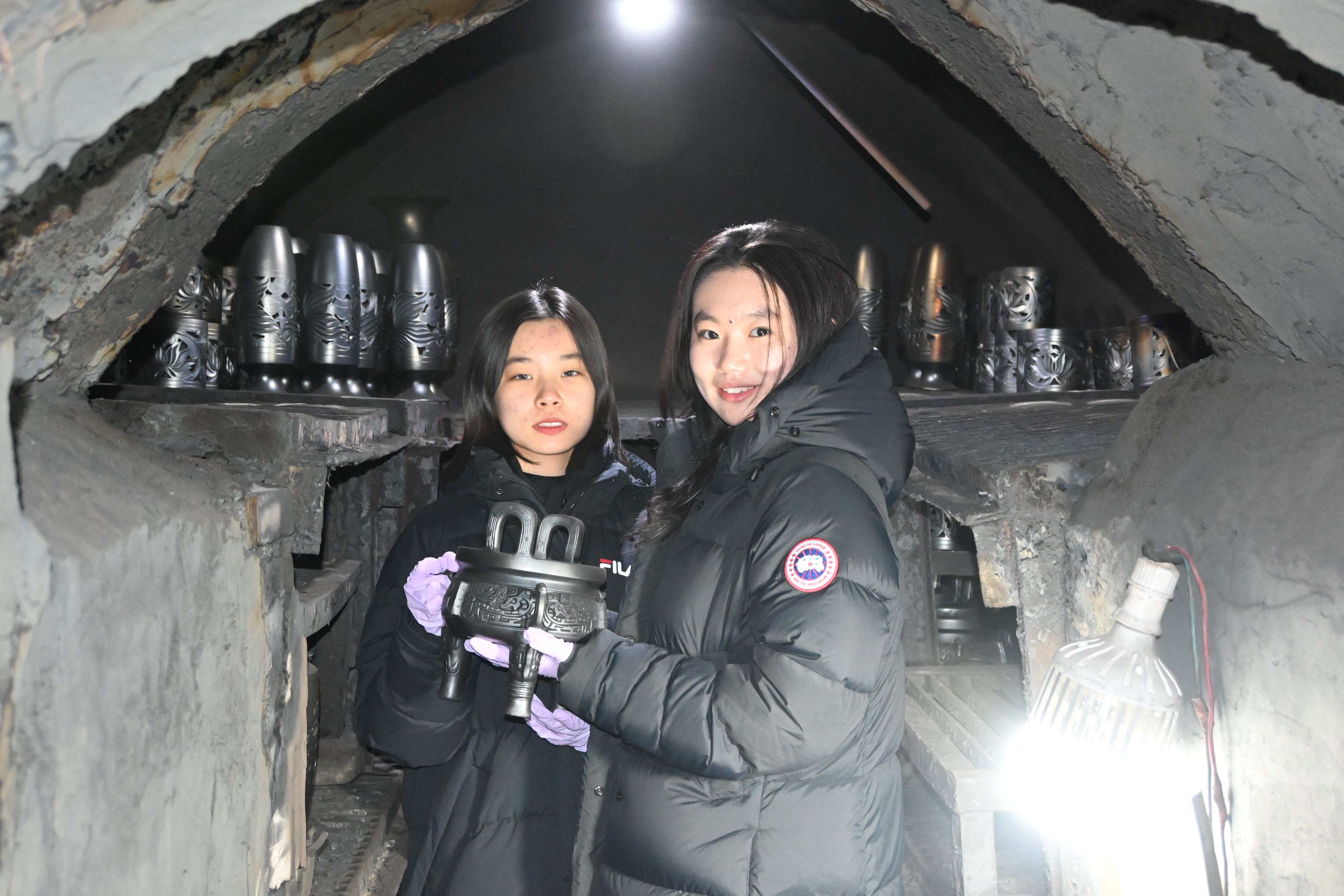 “赫艺承陶韵·墨痕续匠心”实践队深入章丘德功龙山黑陶研究所,在传承人胡新苗的指导下,探寻“烟熏渗碳法”的千年奥秘,用镜头定格窑火不息的工艺精髓。“东昌葫韵”实践队成员执刀刻葫,从选材设计到运刀雕刻,感受“以刀为笔、以葫为媒”的匠心巧思。“寻根鼓子秧歌·印迹青春商河”实践队成员前往商河县向国家级传承人王宗来求教,从“狮子大张口”到“八步赶蝉”,在一招一式间体悟黄河儿女的刚劲气魄。“赫艺凝香,非遗新扬”实践队则走进兰陵美酒酿造基地,见证“备料制曲—糖化发酵—封缸陈酿”等八道古法工序,在酒窖深处读懂坚守的意义。