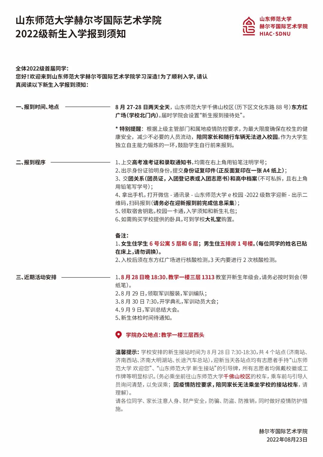 2022级新生入学报到须知