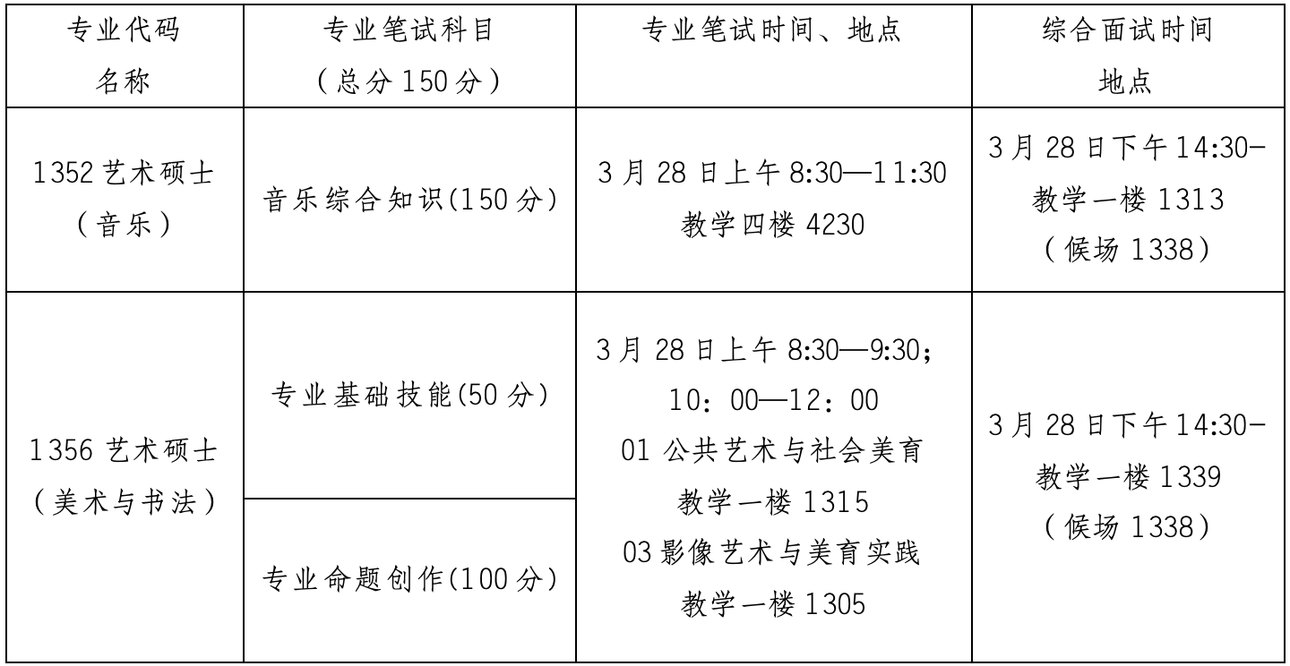 (3)笔试统一提供画板、画架、考试用纸(或画布),其它根据研究方向及复试科目自备考试必需品。影像艺术与美育实践方向需自带相机、笔记本电脑、读卡器、储存卡等必须设备。