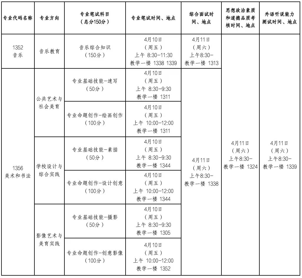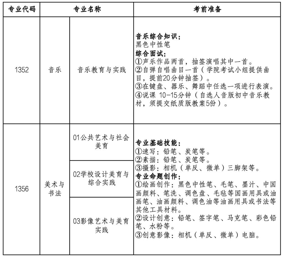 (3)1356美术与书法专业笔试考场统一提供画板、画架、考试用纸(或画布),其他根据研究方向及复试科目自备考试必需品。影像艺术与美育实践方向需自带相机、笔记本电脑、读卡器、存储卡等必需设备。
