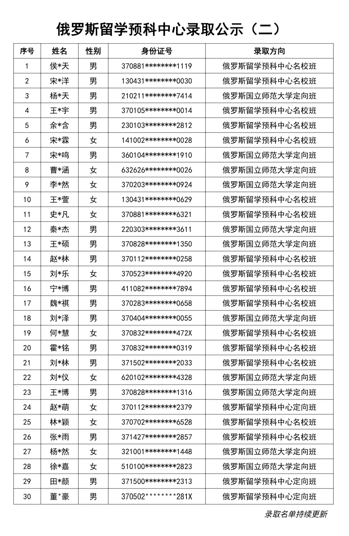 俄罗斯留学预科中心2024年阶段录取公示(二)
